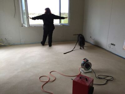 Zur Zeit passiert im Haus nichts. Der Estrich muss trocknen und wir lüften drei Mal am Tag durch Öffnen aller Fenster, so dass die Feuchtigkeit entweichen kann. Morgen werden zwei gemietete Bautrockner geliefert, sie sollen den Trocknungsprozess beschleunigen.