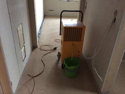 Update: Heute sind die Bautrockner geliefert worden und haben in ca. 3 Stunden schon einen 1/4 Eimer Wasser entfeuchtet. Bin mal gespannt, wieviel Wasser über Nacht in den Eimern ist…