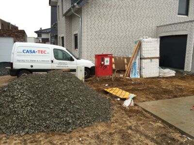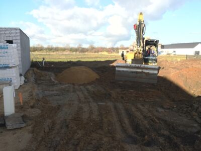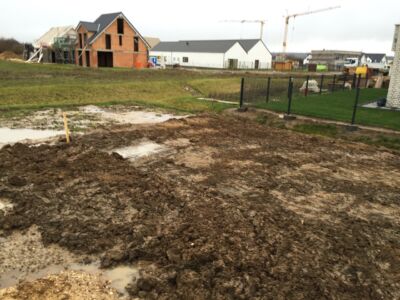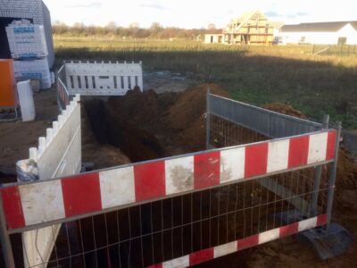 Nachdem der Hausvertrag mit OKAL unterschrieben war, konnte auch das Grundstück offiziell und notariell gekauft werden. Dazu musste natürlich die Finanzierung stehen. Problematisch war sie allemal: Denn kurz vor Unterschrift des Darlehensvertrags kam der plötzliche Tod von Hans dazwischen und die Bank stornierte kurzerhand das bereits zugesagte Darlehen. Wir mussten die gesamte Finanzierung neu aufsetzen, bereits vollzogene Grundbucheintragungen ändern und das alles mit dem enormen Zeitdruck der fristgerechten Bezahlung des Grundstücks. Dank der äußerst geduldigen Vorbesitzerin konnte die Finanzierung endlich abgeschlossen werden und mit mehr als 2-monatiger Verspätung auch das Grundstück bezahlt werden.