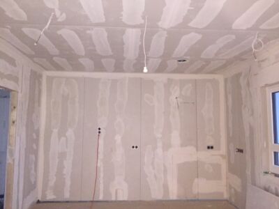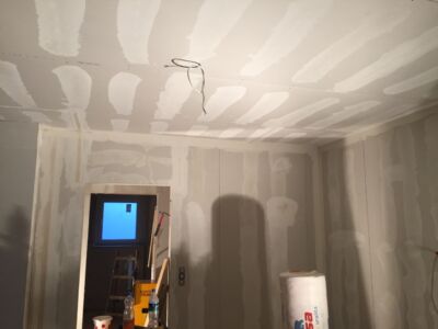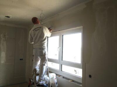 Die Spachtelarbeiten gehen gut voran und der Malermeister ist sehr optimistisch, was den Fertigstellungstermin 18. Mai angeht. Er sagt, alles sei überhaupt kein Problem…. Er wird spätestens am 10. Mai mit allen Tapezier- und Malerarbeiten fertig sein, die Fliesenleger kommen nächste Woche Mittwoch oder Donnerstag und brauchen max. 4 Tage, also bis zum 11. oder 12. Mai. Das Parkett wird parallel oder kurz danach gelegt. Das dauert auch nur 3 Tage… Es sieht also wirklich gut aus.